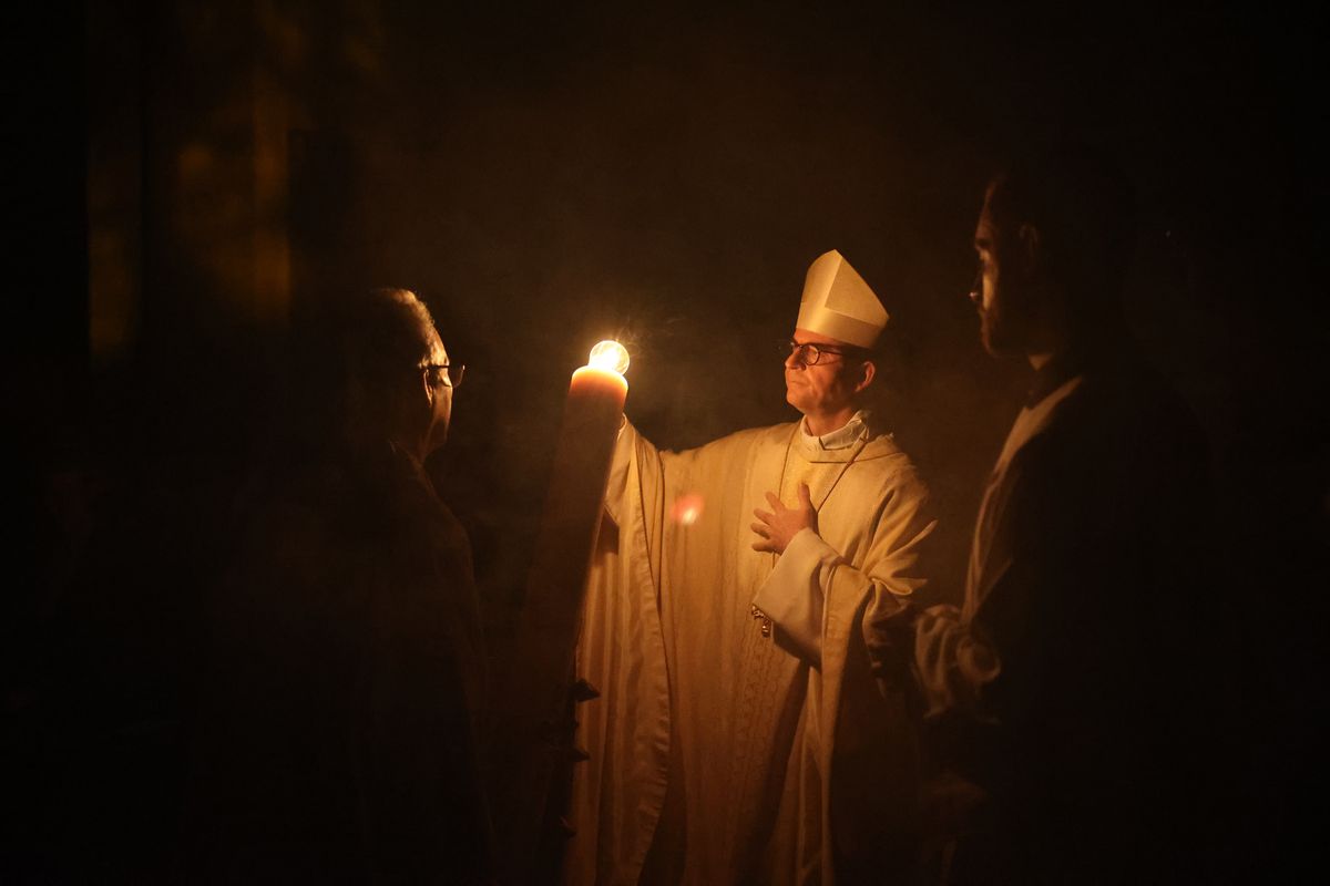 Die Osternacht ist der Höhepunkt der Feier der drei österlichen Tage und des gesamten Kirchenjahrs. Bischof Jung feiert sie am Samstag, 30. März, um 21.30 Uhr im Kiliansdom. Die Mädchenkantorei am Würzburger Dom unter der Leitung von Domkapellmeister Rüth gestaltet die Feier mit „Antwortgesängen zur Osternacht“ von Alexander Rüth und Otmar Faulstich, „Surrexit pastor bonus“ von Felix Mendelssohn Bartholdy, „O filii et filiae“ aus dem Oratorium Christus von Franz Liszt und „Messe pour deux voix égales“ von Cecile Chaminade. Nach der Feuerweihe und dem Entzünden der Osterkerze am Feuer ziehen Bischof Jung und die Mitglieder des Domkapitels mit der brennenden Osterkerze in den dunklen Dom. Danach singt der Diakon das sogenannte Exsultet, das Lob auf die Osterkerze. Bei den Lesungen wird an die Heilstaten Gottes seit der Erschaffung der Welt erinnert. Im Zentrum der alttestamentlichen Texte steht der Durchzug durch das Rote Meer. Beim Gloria erklingen wieder die Glocken und Orgelmusik setzt ein. Die neutestamentliche Lesung aus dem Römerbrief weist auf das neue Leben der Getauften durch die Auferstehung Jesu hin. Im Evangelium mit dem Halleluja-Ruf wird die Botschaft vom leeren Grab verkündet – in diesem Jahr, wie sie der Evangelist Markus berichtet. Tauf- und Eucharistiefeier sind weitere Teile dieser Nachtfeier, der „Mutter aller Vigilien“. In diesem Jahr tauft Bischof Jung eine Erwachsene.