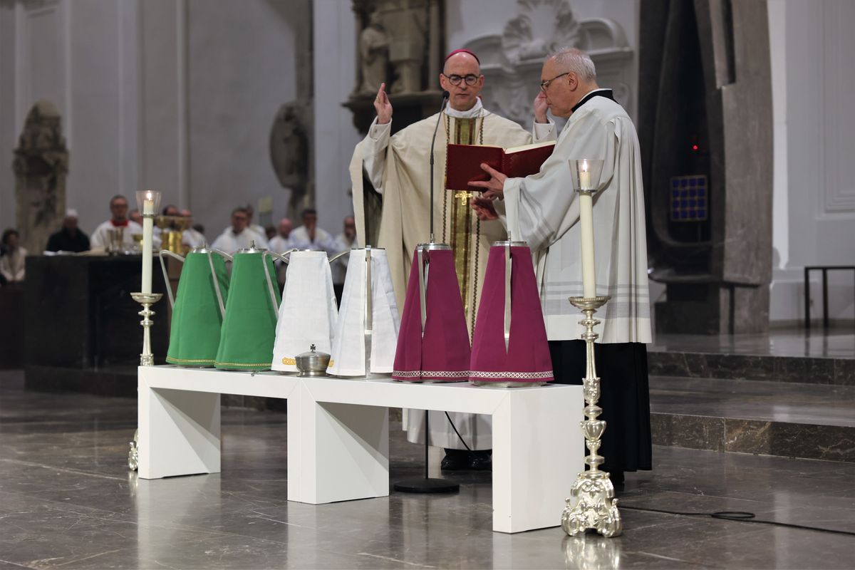 Bischof Dr. Franz Jung hat am Montagabend, 25. März, im Würzburger Kiliansdom die Heiligen Öle für alle 43 Pastoralen Räume im Bistum Würzburg geweiht.