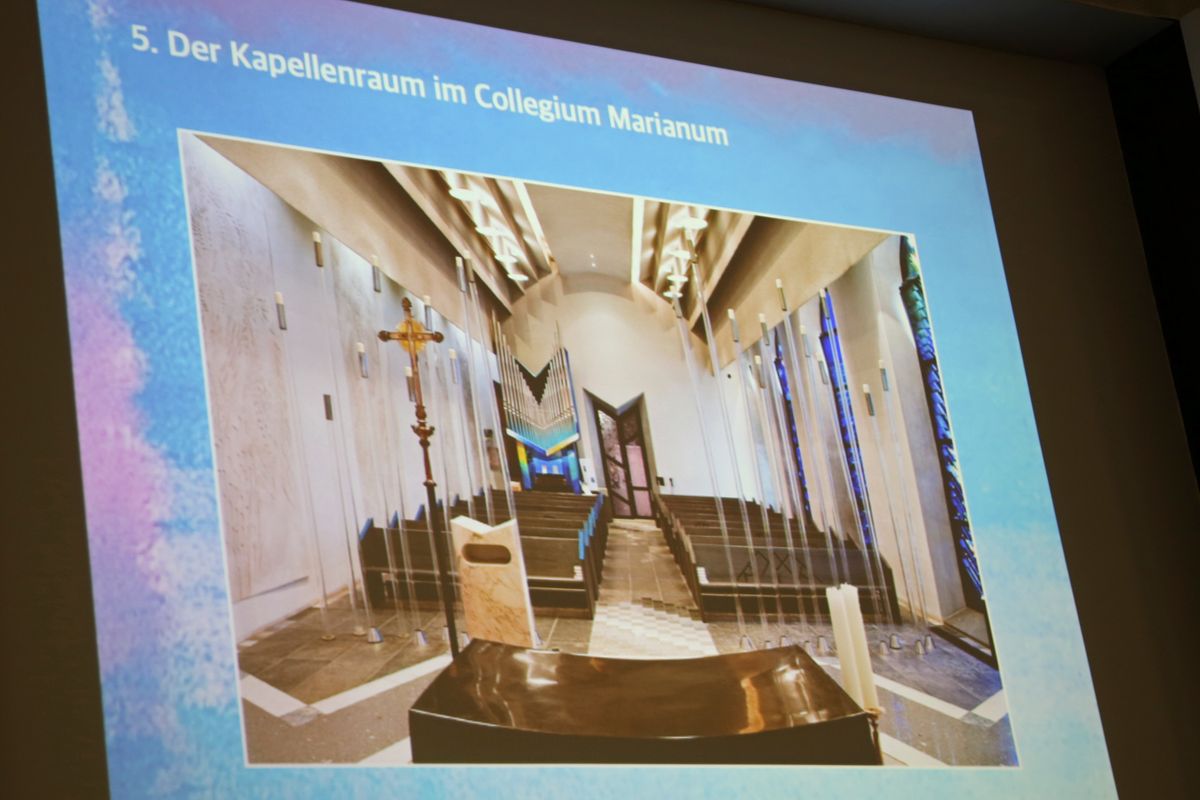 In seinem Einführungsvortrag „Heinz Mack – eine Lichtgestalt in der zeitgenössischen Kunst“ beschrieb Bischof Hofmann den Beginn der Zusammenarbeit mit Mack. In den 1980er Jahren – damals war er Domkapitular und Künstlerseelsorger des Erzbistums Köln – habe er nach einem zeitgenössischen Künstler gesucht, um die Kapelle im Erzbischöflichen Collegium Marianum in Neuss neu zu gestalten. Einen „heruntergekommenen, 1908 neobarock errichteten, langweiligen Kapellenraum“, beschrieb Bischof Hofmann, der selbst Schüler am Collegium Marianum gewesen war. „Belanglos gestaltete Kirchen gab es genug. Hier sollte aber ein Kirchenraum entstehen, der von besonderer künstlerischer Qualität die Öffnung der Kirche zur zeitgenössischen Kunst spiegelte.“ Mack sei sowohl als Mitbegründer der „ZERO“-Gruppe wie als philosophisch hoch gebildeter Künstler bekannt gewesen, der sich intensiv mit der Lichtthematik des Philosophen Plotin (205 bis 270 nach Christus) auseinandergesetzt habe.